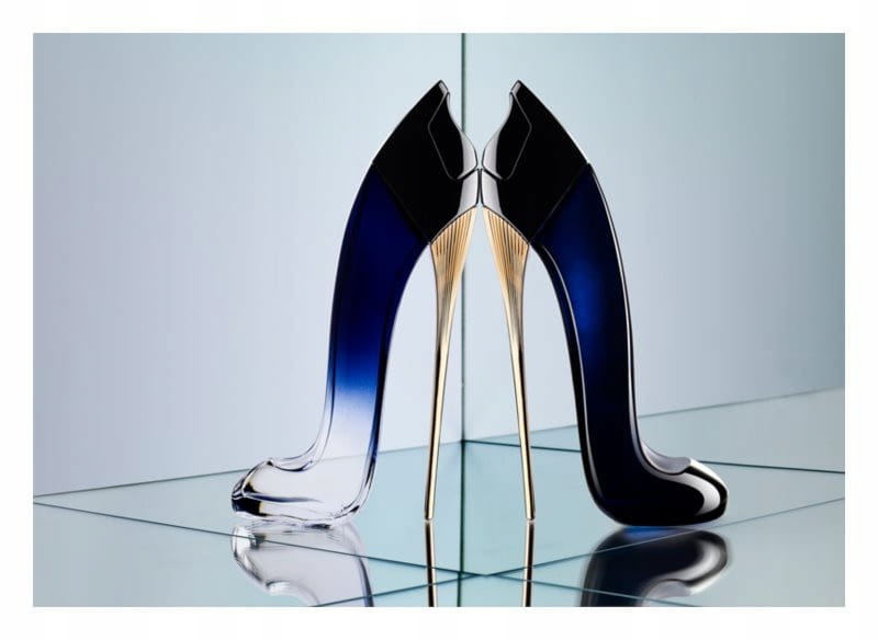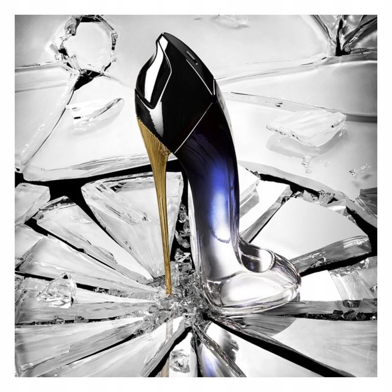 Historia zapachu: Zapach Good Girl Légère nie zmienił stylu nawet w swojej lżejszej wersji i nadal pozostaje zamknięty w ikonicznym flakonie w kształcie damskiej szpilki. Od całkowicie lakierowanej wersji Good Girl lekko się jednak różni, a mianowicie przenikaniem się kolorów. Od przejrzystego czubka aż do ciemnoniebieskiego koloru na górze. Symbolizuje przejście dnia w noc, a także „dobra” w „zło”. Złoty obcas, jako symbol siły, pozostaje niezmieniony i jest stabilnym elementem flakonu serii Good Girl.